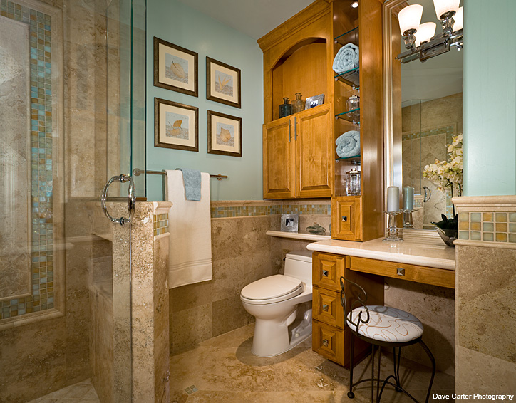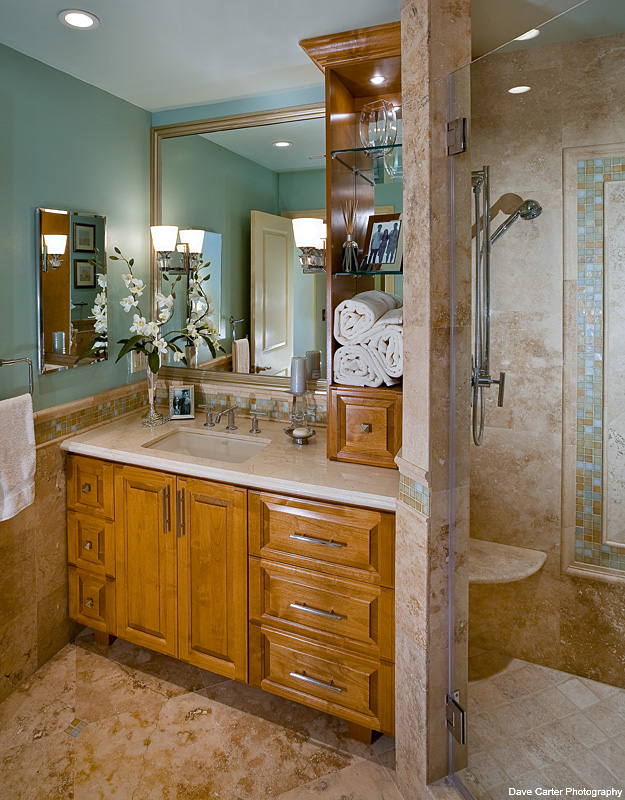 daughter. The combination of iridescent glass tiles, reflective mirrors