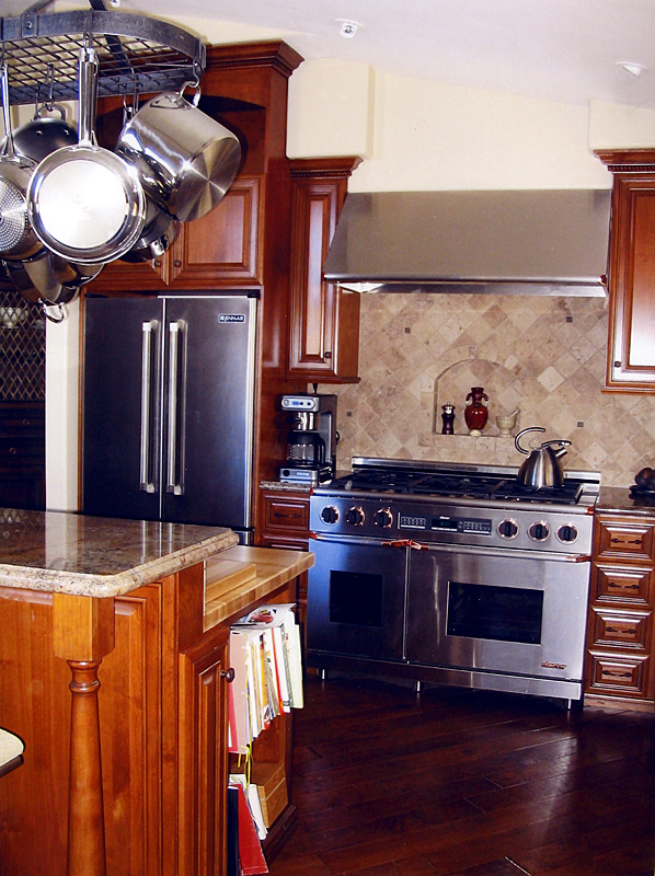 steel, commercial- grade appliances mix with such Old World touches