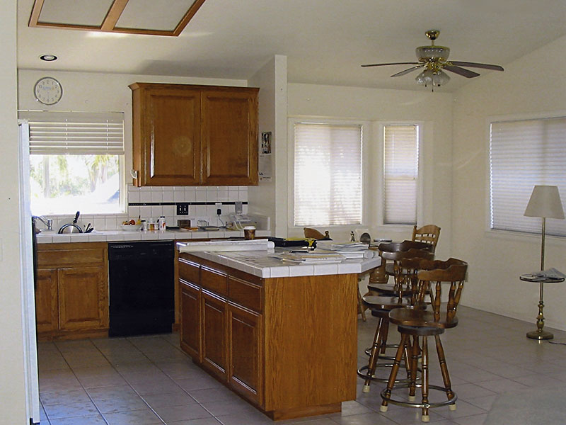 originally had non-descript cabinetry, appliances, and flooring.